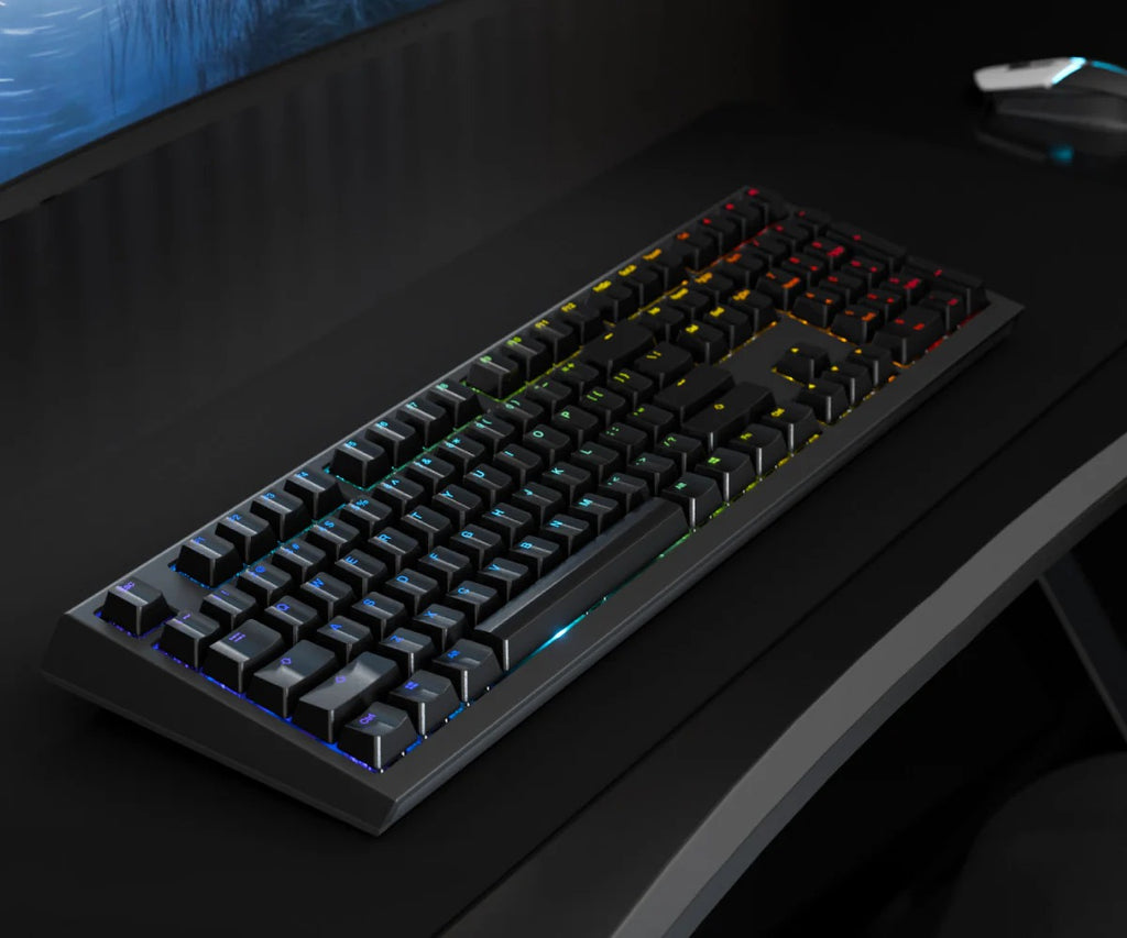 - 鍵帽: Ducky 85% 高純度 PBT 二色成形鍵帽,OEM 高度Ducky 85% 高純度 PBT 熱昇華鍵帽,OEM 高度(依照地區有所不同)