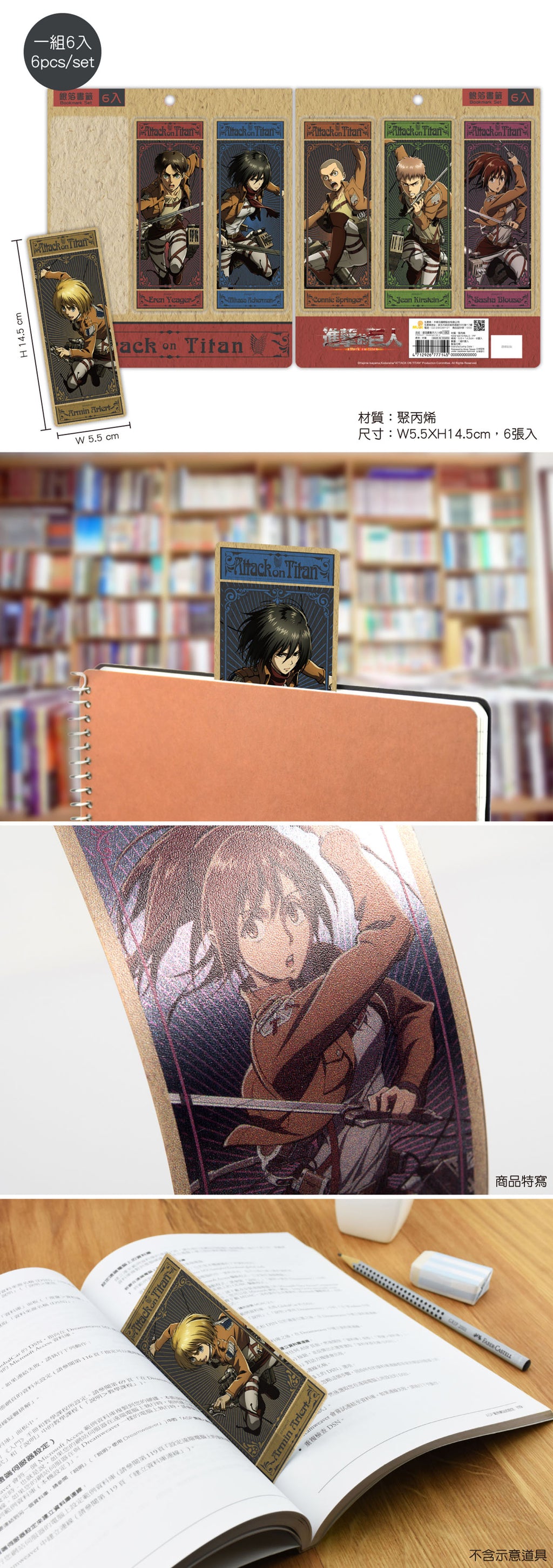 人氣動漫《進擊的巨人》精美銀箔書籤一套(共六款)。